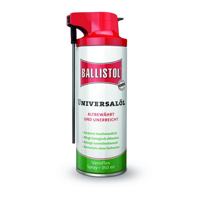 Ob für Handwerk, Haus oder Hobby, ob zum Pflegen, Schützen, Reinigen oder Schmieren, ob daheim, am Arbeitsplatz oder unterwegs - Ballistol Universalöl ist das richtige Öl für 1.000 Fälle und mehr. Es wird als Rostschutz, Schmieröl, Pflege- und Reinigungsmittel eingesetzt. Der innovative VarioFlex hat einen flexiblen Sprühschlauch, der sich individuell verbiegen und jede verborgene Ecke erreichen lässt. Nie war es einfacher von Flächenstrahl (Spray) auf Punktstrahl (Stream) umzustellen. Aus dem Kapillarrohr wurde ein Kapillarschlauch mit Memory-Effekt. Sie verbiegen einfach den Schlauch und schon erreichen Sie abgelegene Ecken und Winkel. Die große Auslösefläche erleichter das Dosieren, auch mit Handschuhen. Punktgenau, soviel wie nötig und trotzdem die bewährte Ballistol-Wirkung.
