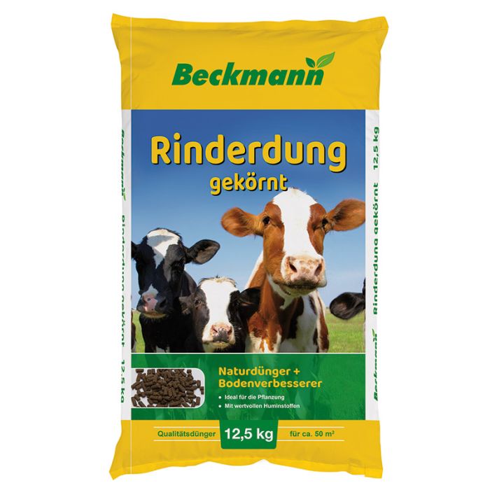 Wirtschaftsdünger aus kompostiertem getrocknetem Rinderdung. Organischer NPK-Dünger 2,4+1,5+3,1 mit Magnesium und CaO. Bodenleben aktivierender Humusdünger. 5 mm Pellets. N / P / K: 2,5+2+2,5+Magnesium+CaO
