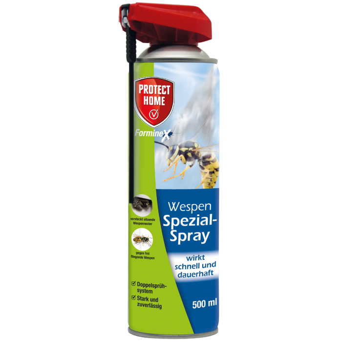 SB-Verbot. Gezielte Anwendung gegen frei fliegende Wespen. Doppel-Sprüh-System für schwer zugängliche Stellen. Starke K.O.-Wirkung.